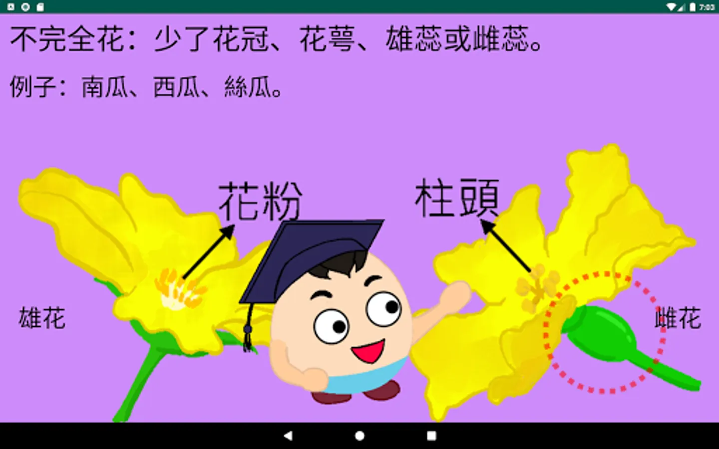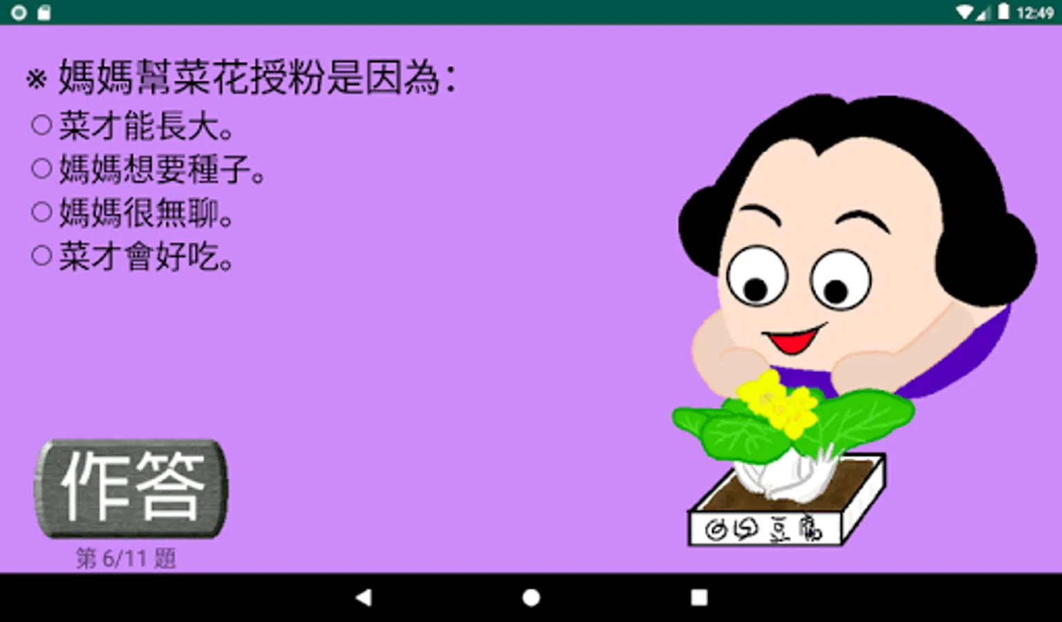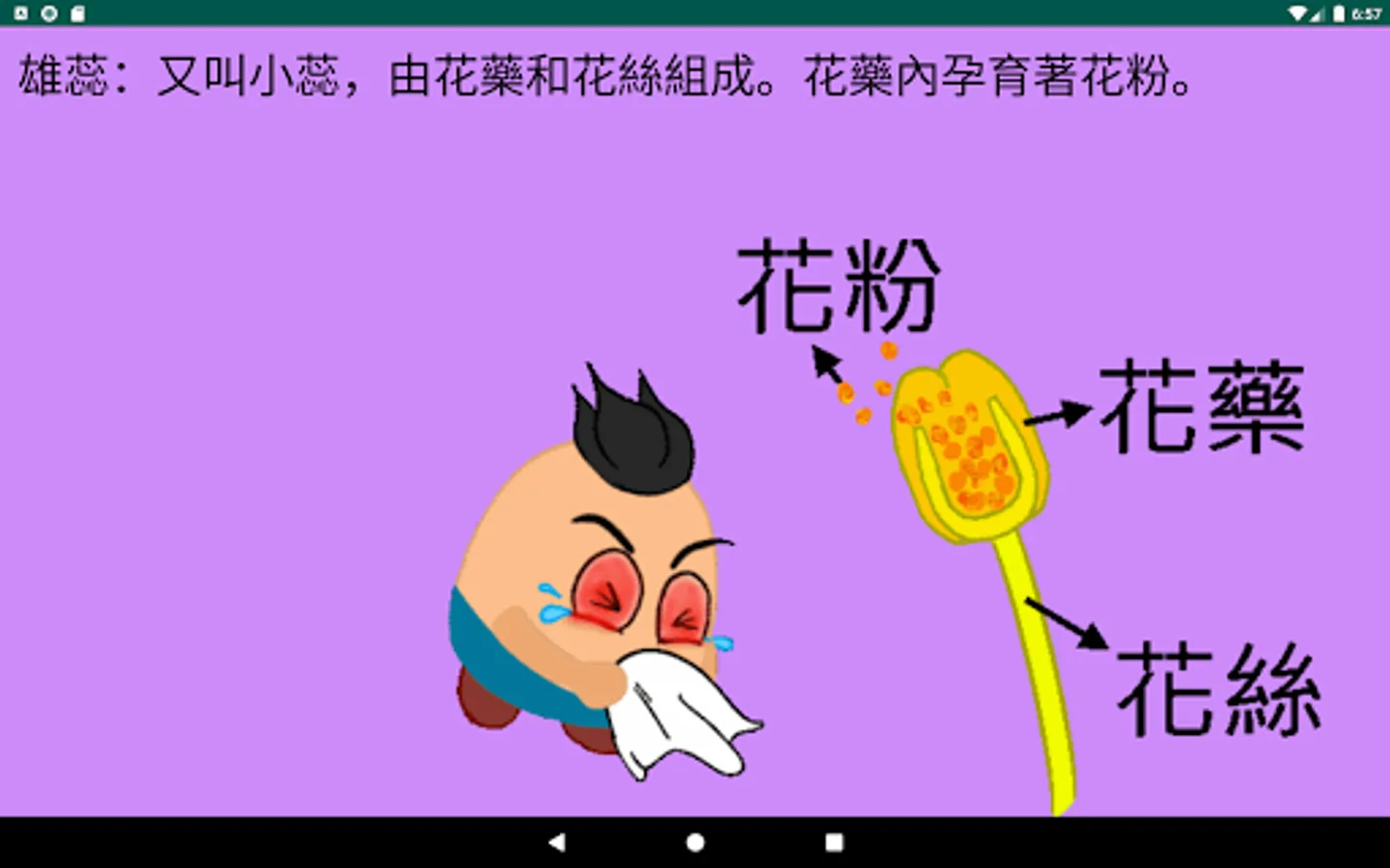 頁面的文字或圖案都可以點讀。以互動學習的方式認識花與種子的構造。童言童語的串場,增加學習的樂趣。