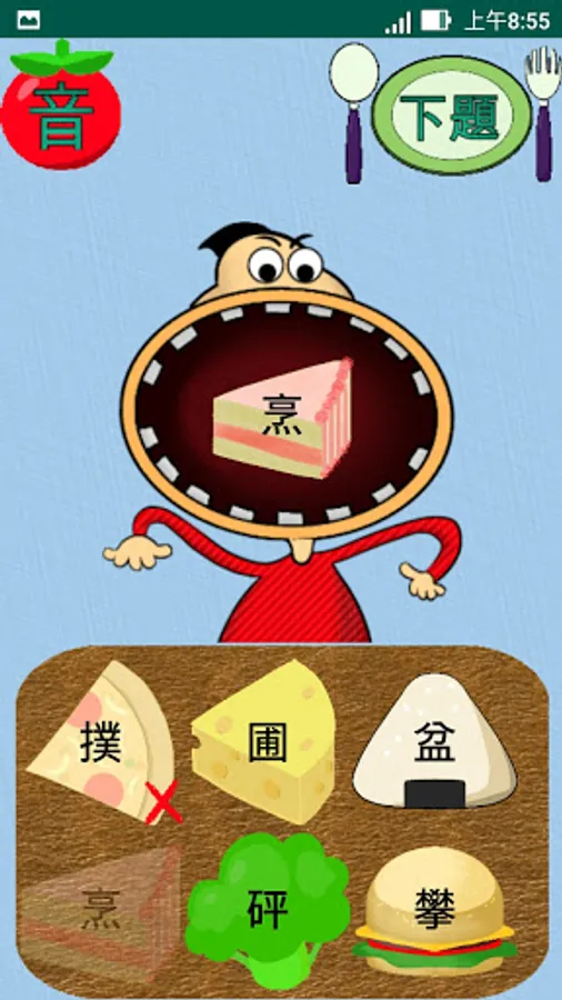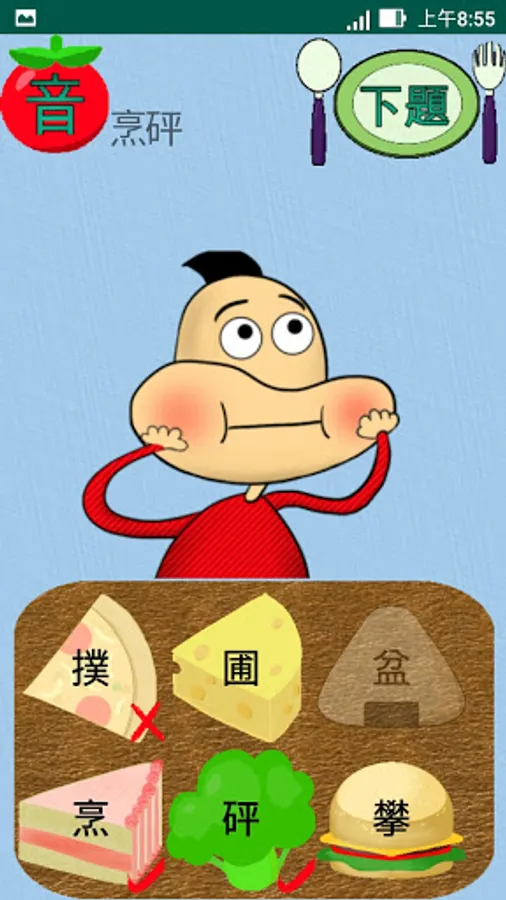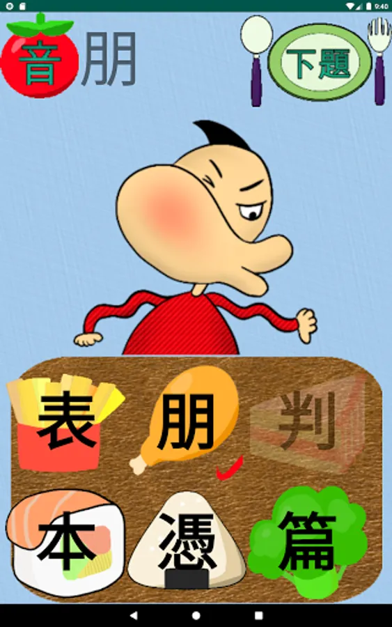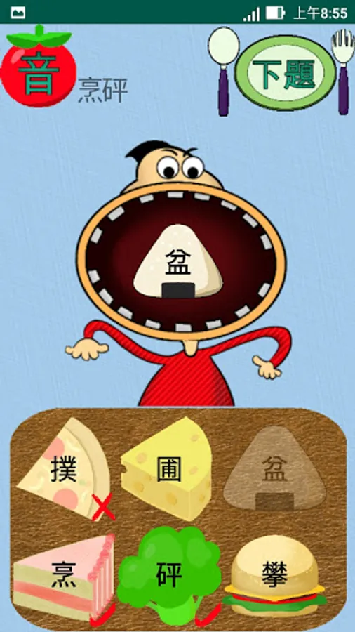 Feed him food with correct pronunciation! Mainly pronounced with ㄅ/b and ㄆ/p.