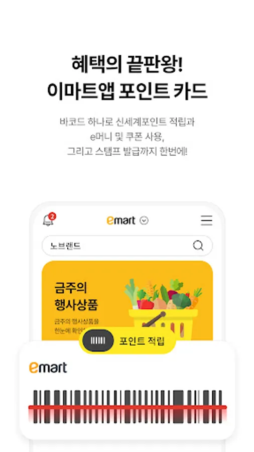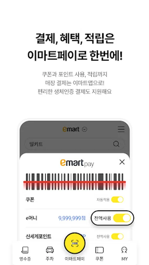 Use the E-Mart app to make in-store payments including using coupons and points and accumulating points!
