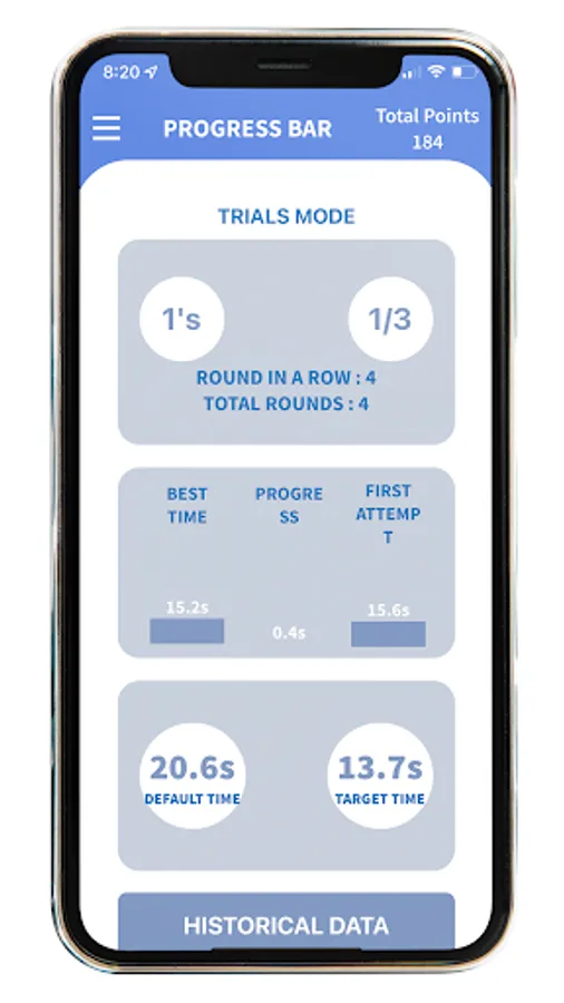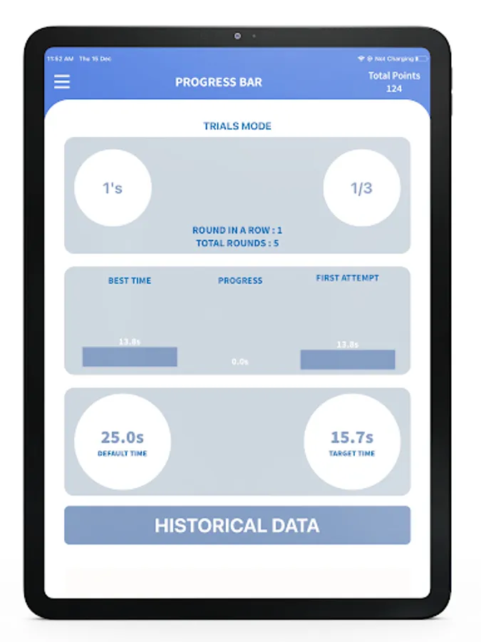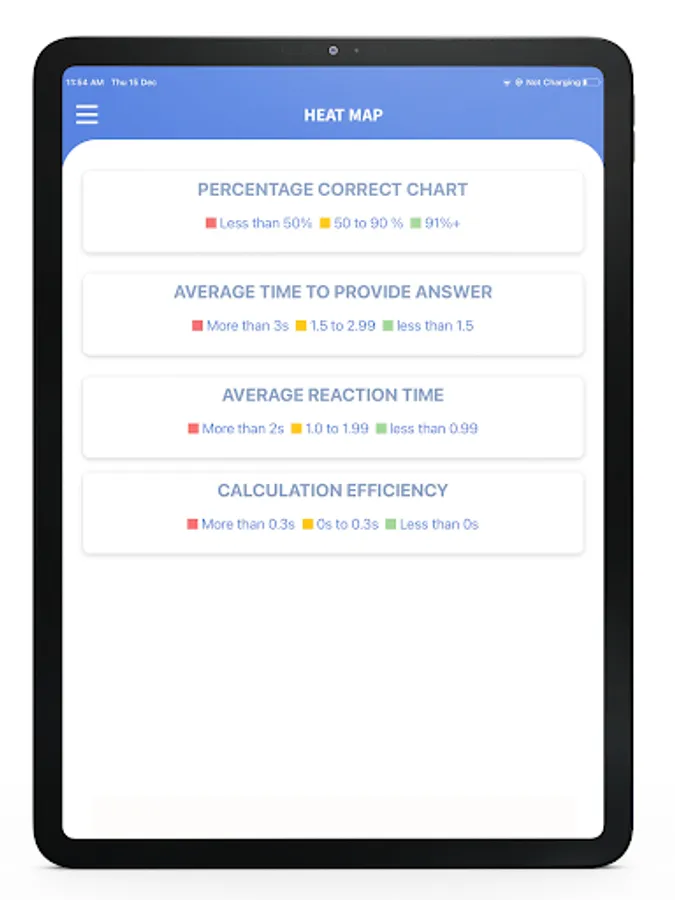 The Trials session promotes a high level of mental performance. In particular, the learner is typically presented with at least three rounds. To achieve success and advance to the next session the learner must demonstrate an appropriate speed and accuracy for three consecutive rounds.