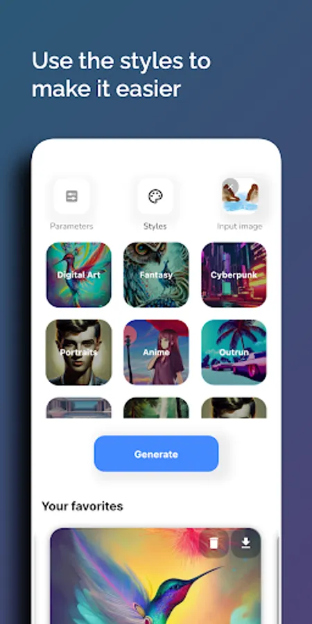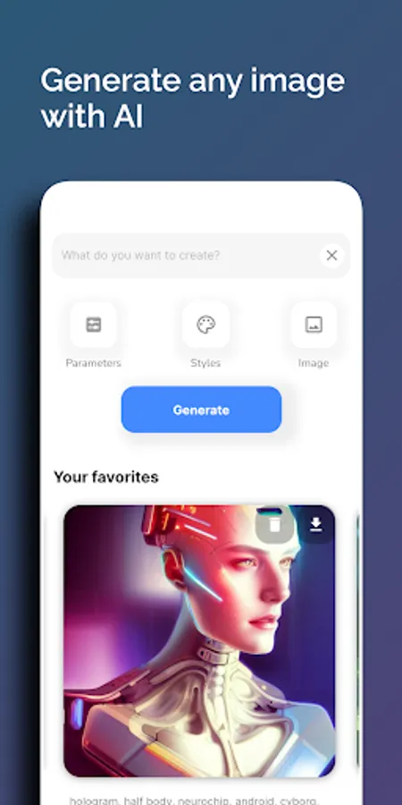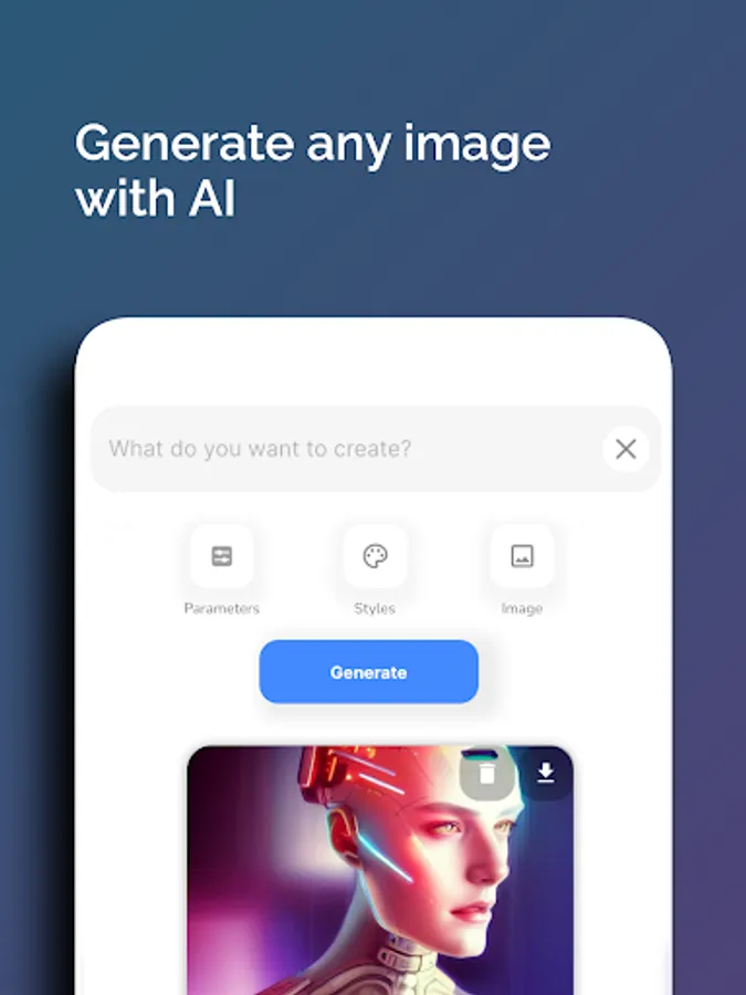 How does it work? Just type some text and you are ready to go, the AI model Stable Diffusion will do the rest! An AI artwork corresponding to what you typed will be generated. You can also manage several parameters to improve your skills and generate exactly what you want! Generate artworks, portraits, digital characters and sprites, icons and photorealistic images.