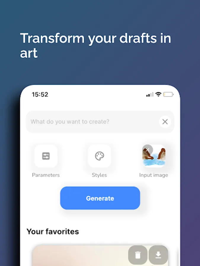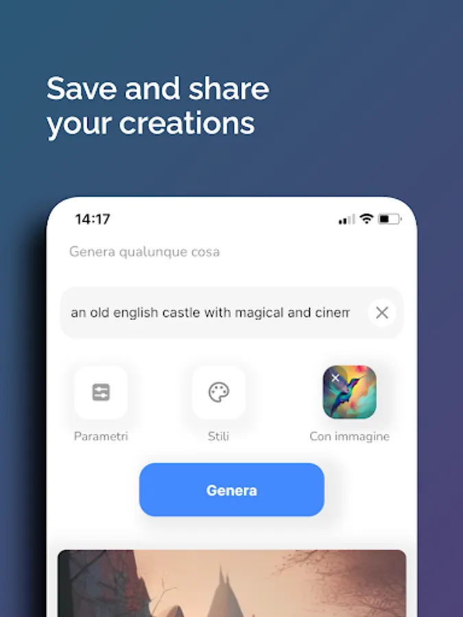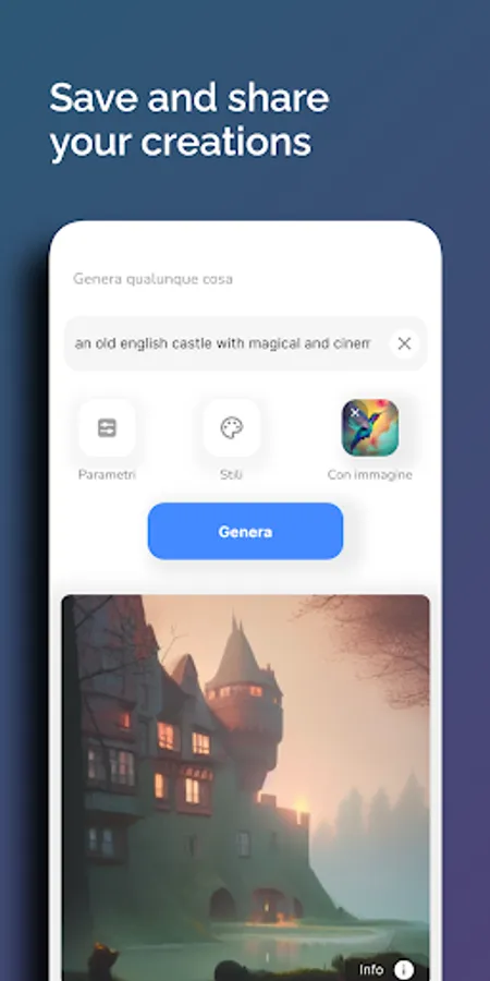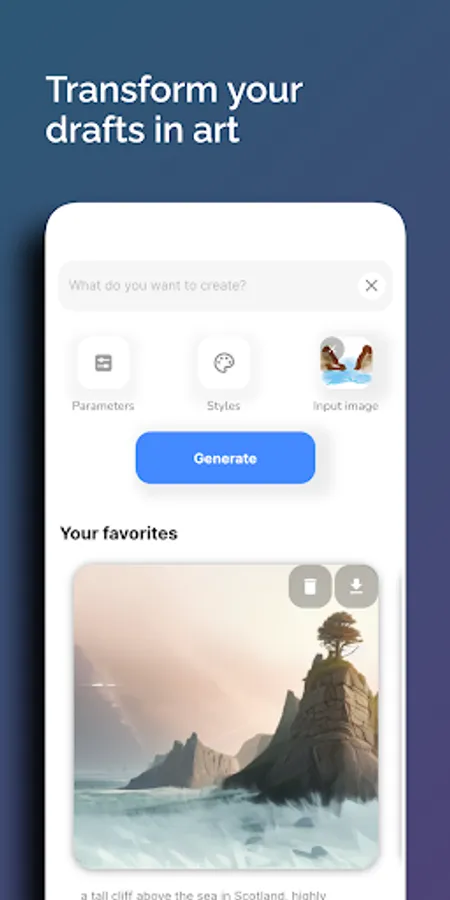 If you need inspiration for your next creation, need to make a quick sketch for your art project, or you simply want to have some fun, ImmaginAI can help you with that. You can also easily store and download your favorite creations.