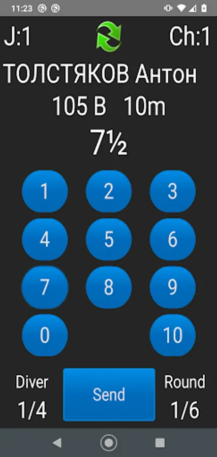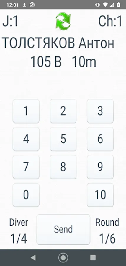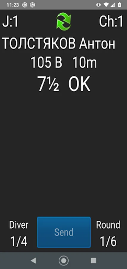 * displaying the diver's name, the dive number, position and board before each dive