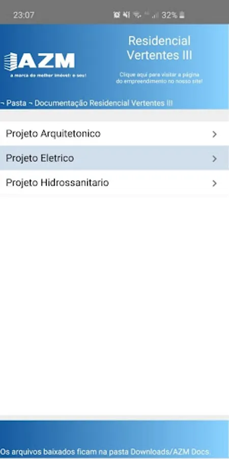 Access to the delivery documentation of the Residential Vertentes III of AZM Construtora.
