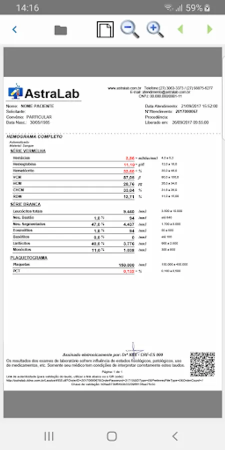 It allows quick access to your laboratory results, informs you when the reports are ready and allows you to monitor the progress of the exams. Control test patients can keep their previous test results locally in the app, in addition to PDF reports.