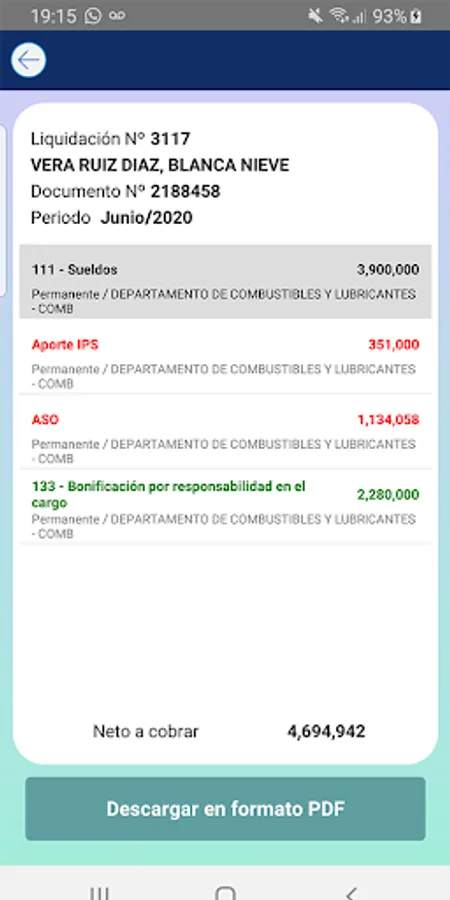 Self-service application (Salary settlement consultation, dialing registration, and files). Exclusively for officials of the National Administration of Navigation and Ports of Paraguay. It allows both current and historical queries.