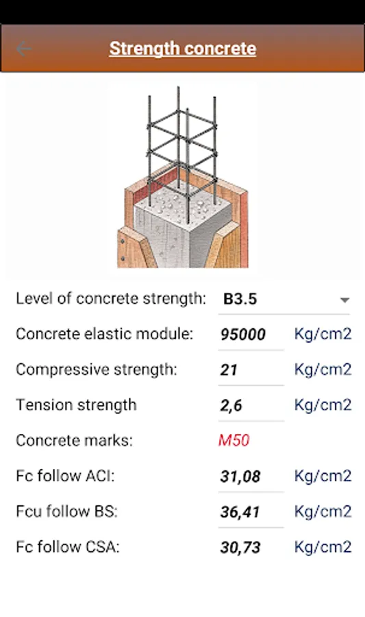 - Strength of concrete, automatic conversion of concrete grades, conversion of concrete intensity to the standards ACI, BS ...
