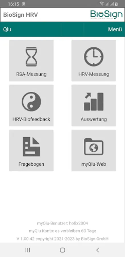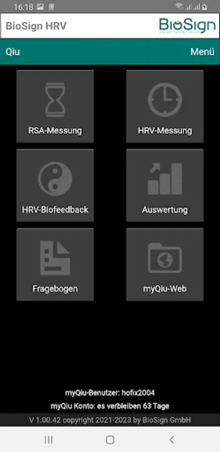 With this app you can perform HRV biofeedback, RSA measurement and short-term HRV measurements. The measurements are loaded onto the myQiu server and evaluated there. You receive the evaluation in the form of a PDF report or a representation within the app. A myQiu account is required to use the app.