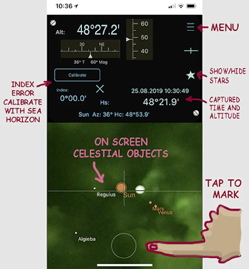 CamSextant allows measuring celestial objects altitudes with your phone,