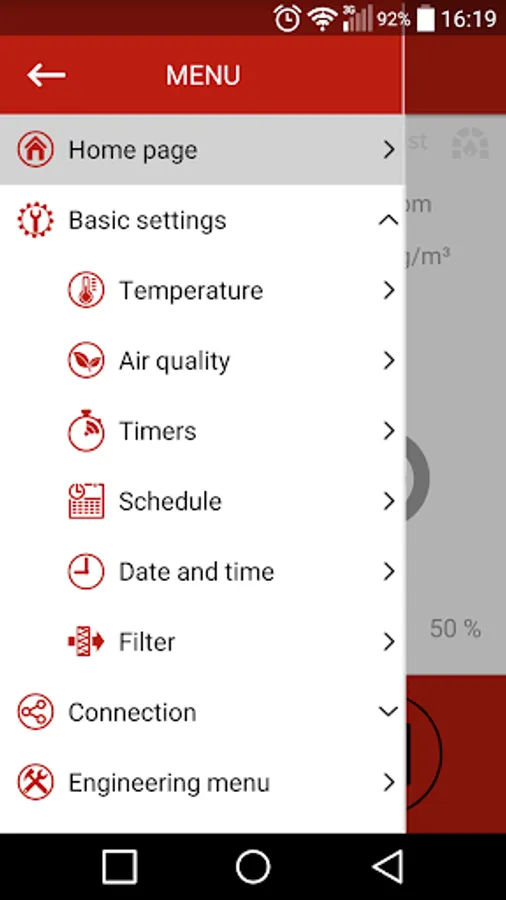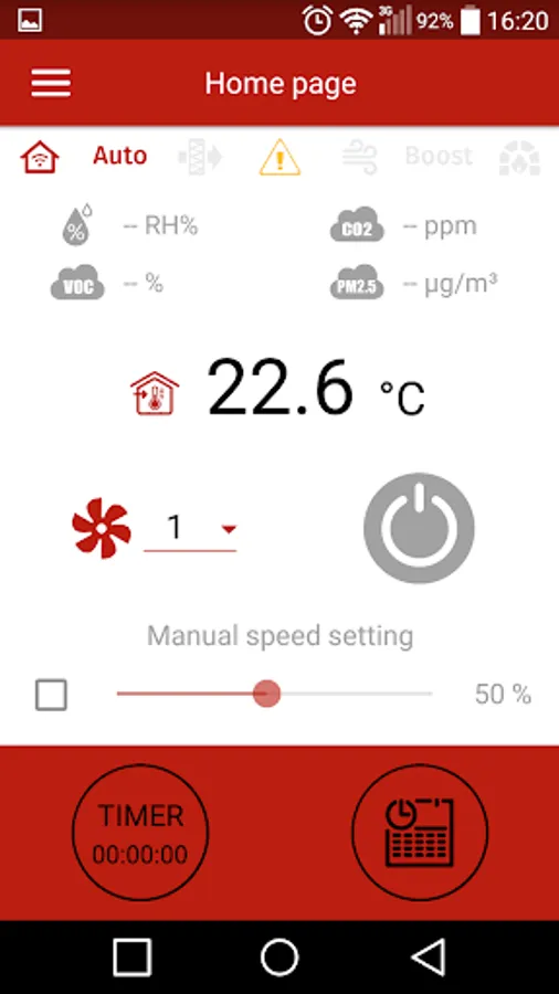 With the DUKA VillaVentilation app you can easily operate your air handling unit from your phone, when and where you want to. The home page makes it easy to operate the unit, so you can enjoy a home with fresh air without radon, moisture and CO2.