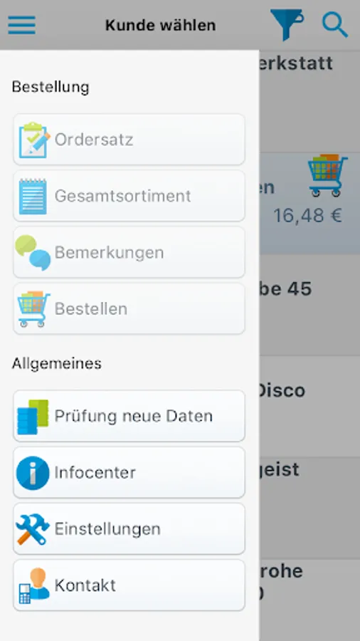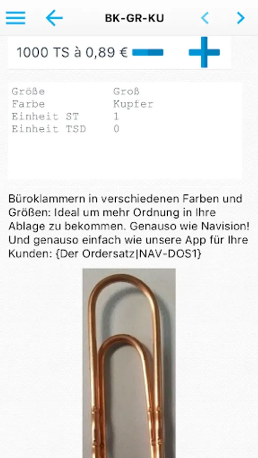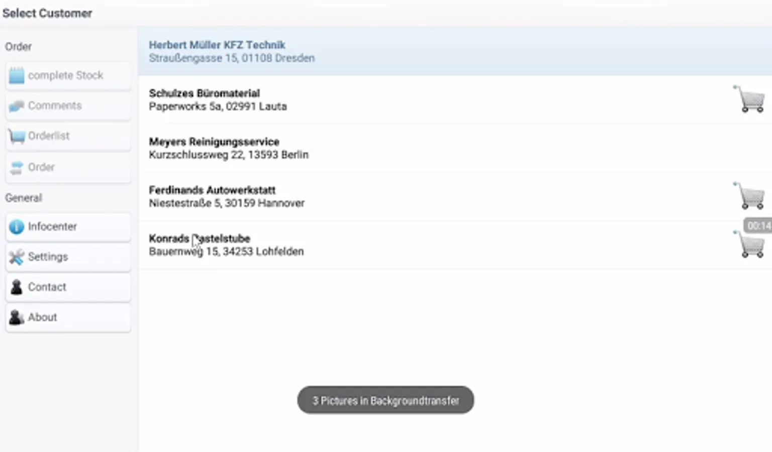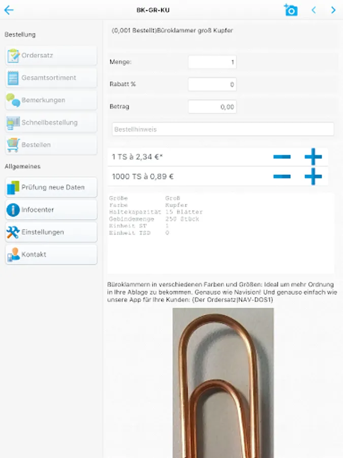 "Der Ordersatz" gives your company (no mater if big or small) your own orderapp! Less effort than a webshop. Show your customer his individual items and scaled price instead of discussing about the last discount. Describe your products with pictures, detailed text, technical attributes. Include a link to your webshop. Speed up your orderprocess to the max by OneTip Ordering and direct import into your EPR instead of reading unreadable fax orders.