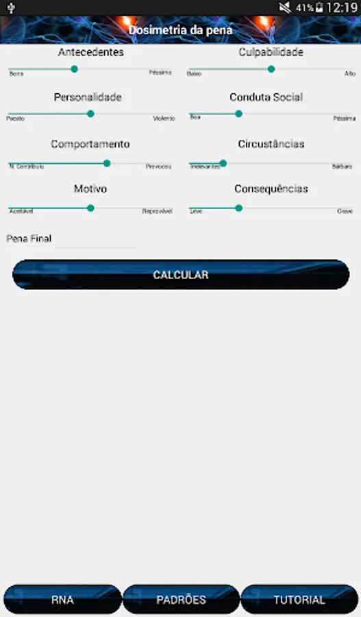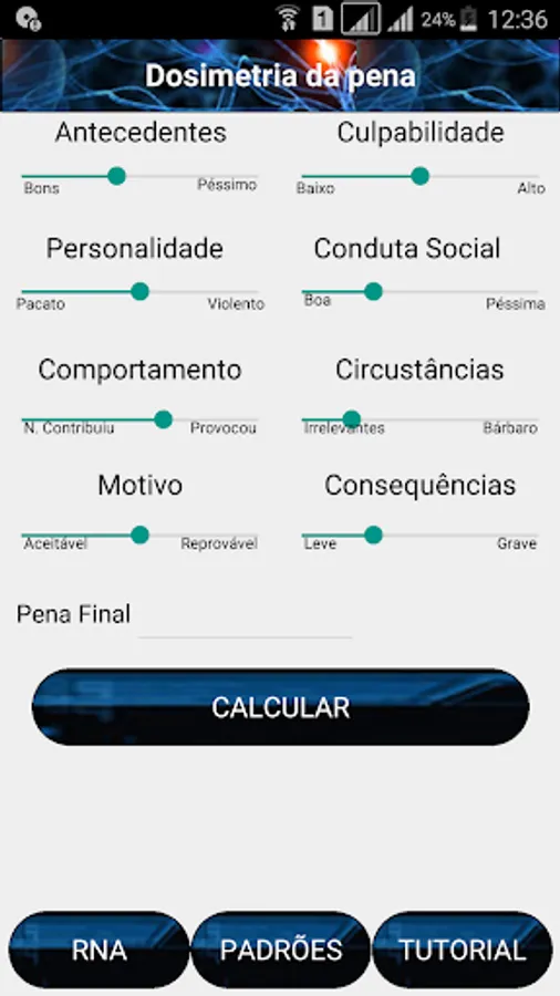 too, the lowest values input will result in a more severe apenação the defendant, while higher values will represent a lesser culpability of the defendant, should be his sentence base more softened.