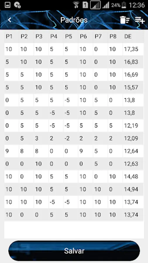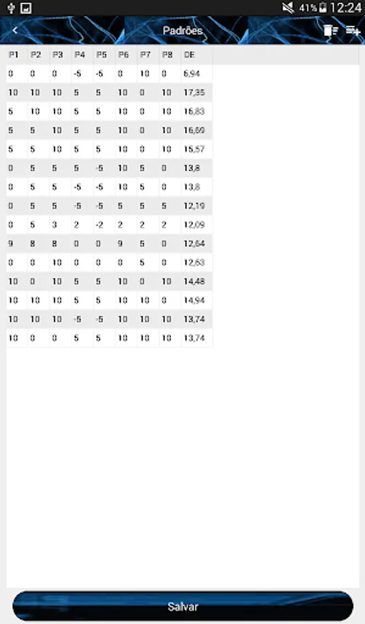 1. The user enters the defaults using the Defaults button. By default, the application has 15 patterns with their respective desired value. However, the user can change these values.