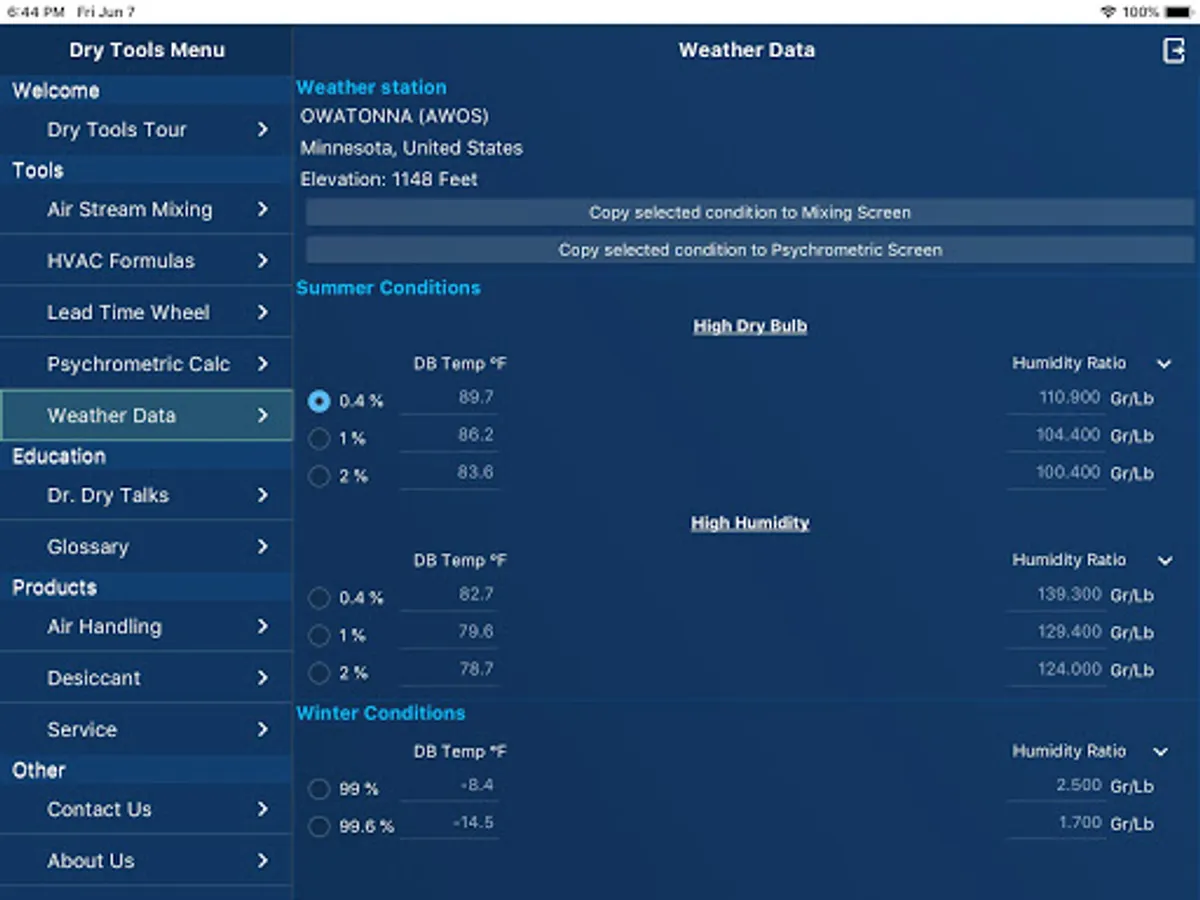 In summary, Dry Tools will provide you with the tools you need in one handy app. Install the free App and get started on your psychrometric journey.