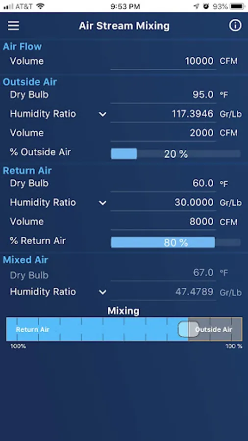 • Air Stream Mixing: Solve for mixed air conditions from any two airstreams