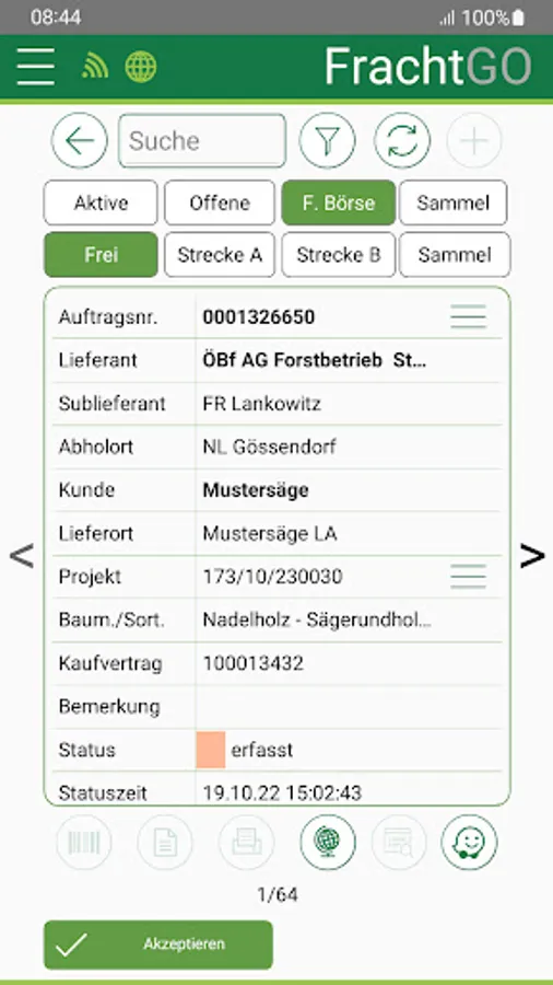 Comprehensive mobile logistics app to optimize transport execution with a freight exchange, process transport orders with or without supply numbers, create status reports, delivery notes, trailer transshipments, wagon loading and map display. Provides detailed information based on the FHPDAT data exchange. The digital mapping ensures more transparency, accelerates and facilitates the process handling.