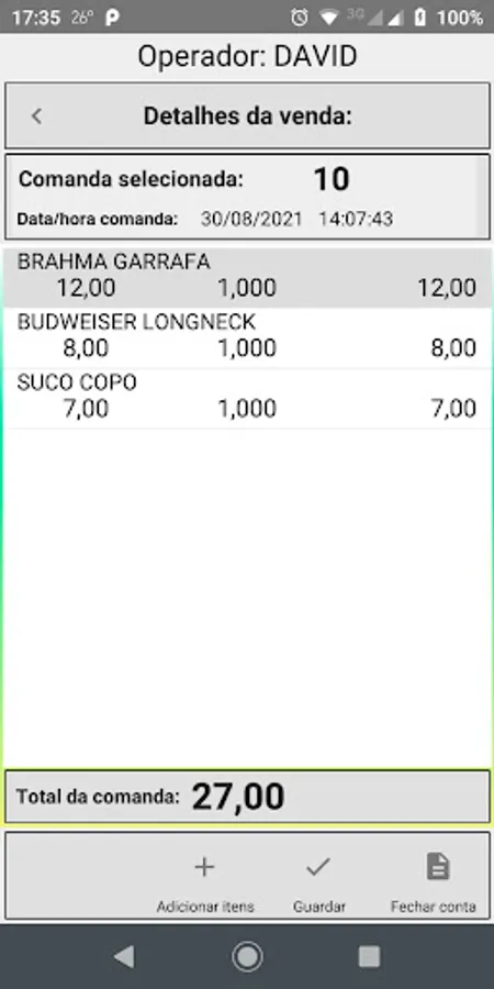 App developed for use by users of the GeconPDV2 system, who acquired the mobile module. Restaurants, retail and others.