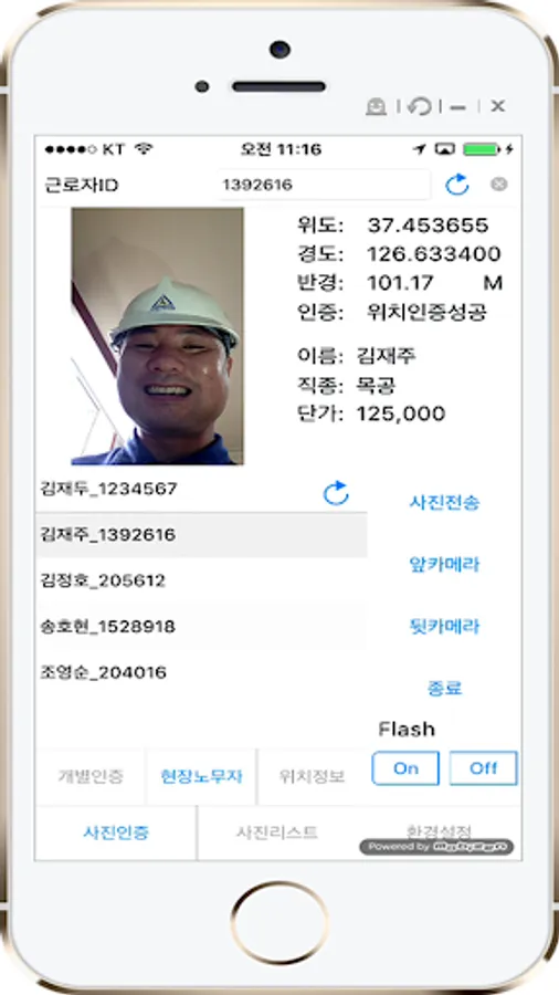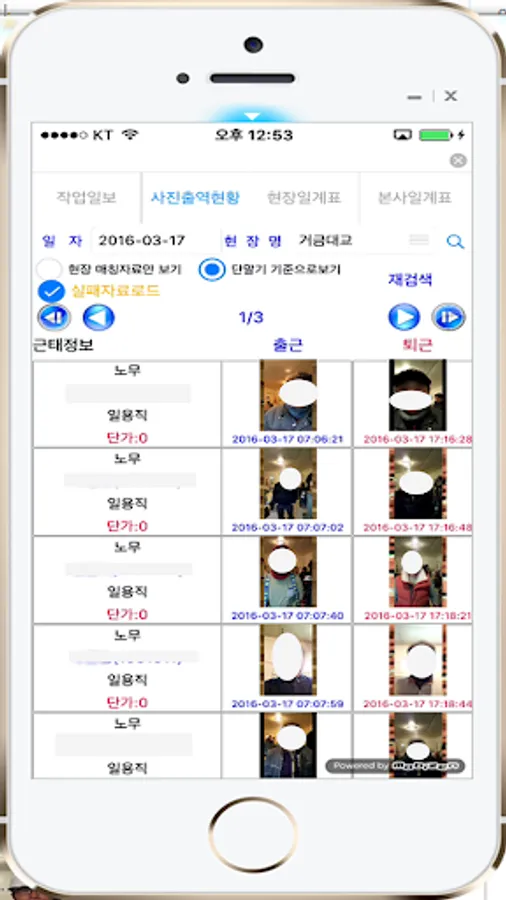 3.위치기반 근태기록,사진전송 확인기능으로 일용직및 직원근태관리