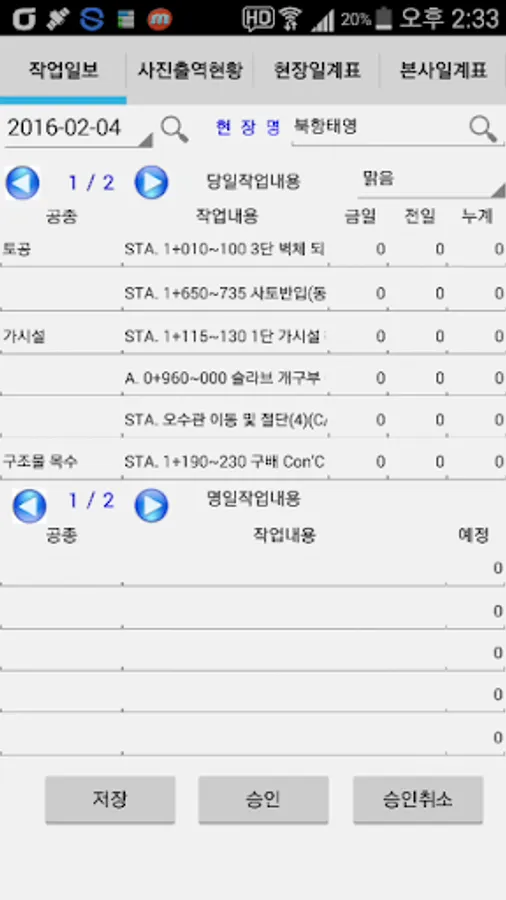 6.작업일보작성,자금청구서,작업일보,업무일지