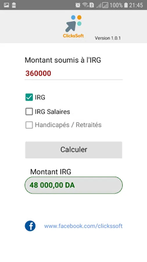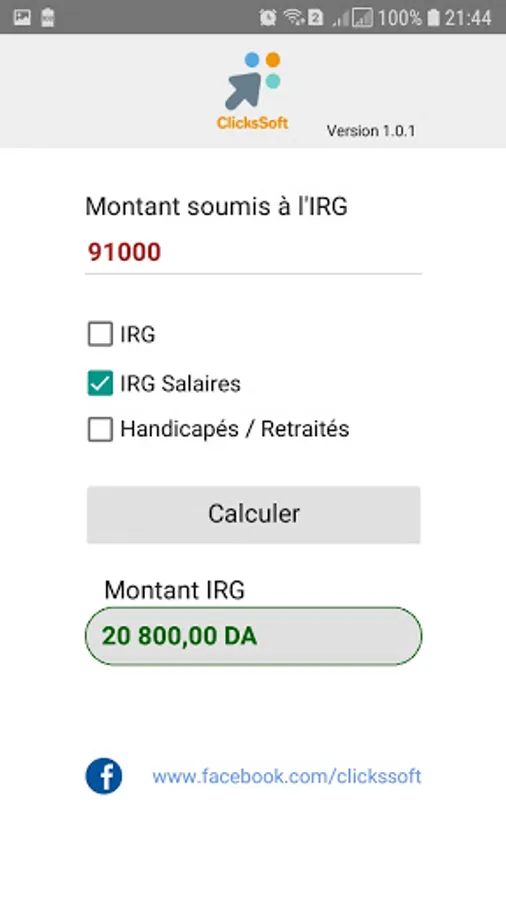 IRG2020ClicksSoft is a free application which calculates the Global Income Tax (IRG) according to the 2020 finance law.