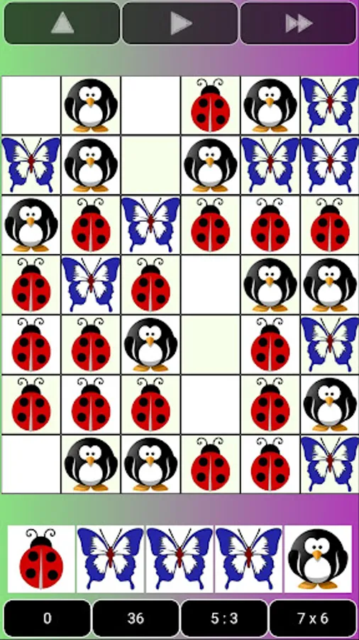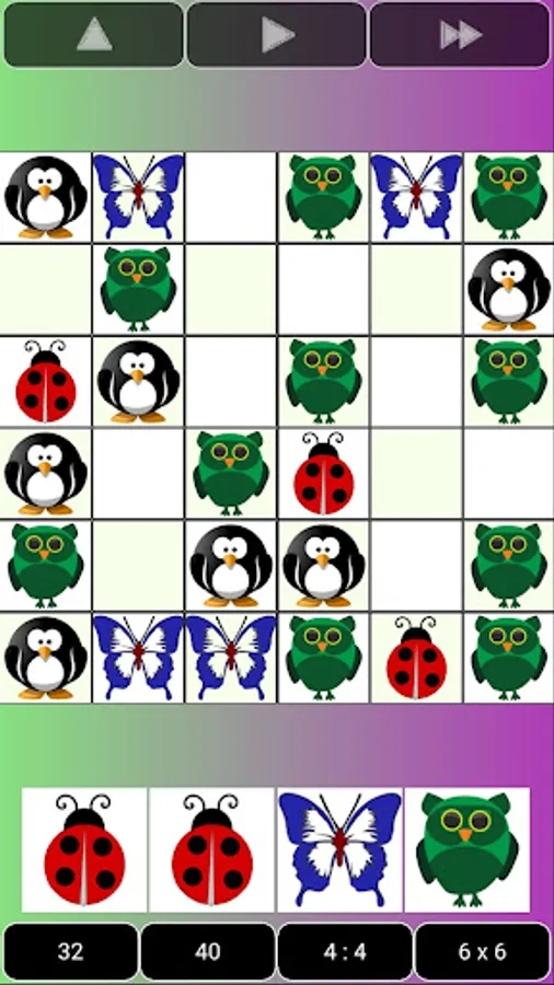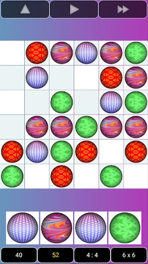 Move objects (balls or shapes) from cell to cell to group them into lines of the same color.