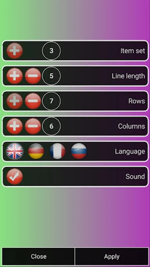 When you start the Lines game, you see a playing field with N*K (where N, K are set in the settings) cells.
