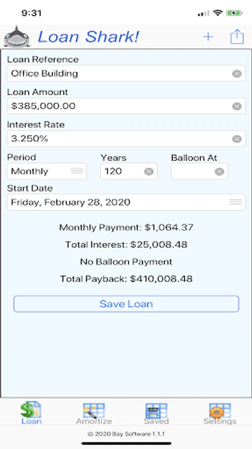 Loan Shark! is the fun and easy way to track your loans and compute loan payments for yourself and your customers without all the ads and the requirements of online calculators. You never need to enter personal information or even your email address. Just calculate and save your loans.