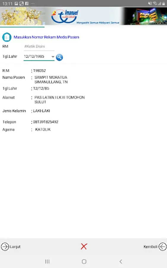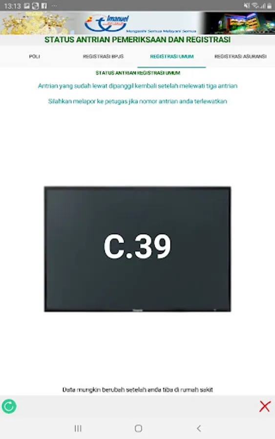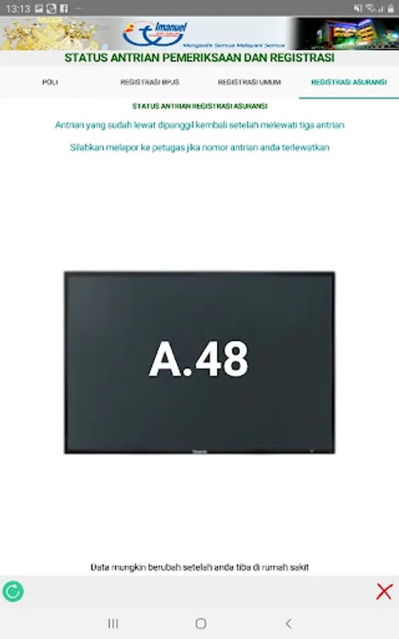 delay in verification will result in automatic cancellation by the system, so the patient in question must re-register starting from the initial online registration process or directly to the registration machine available at Immanuel Way Halim Hospital, Lampung
