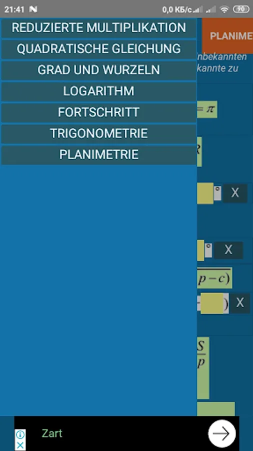 You can select the desired section in the table of contents at the top, in the page exit area and by scrolling your finger left and right. Swipe left to right from the edge of the screen to make the control panel exit the screen. The formulas are highlighted for simplicity.