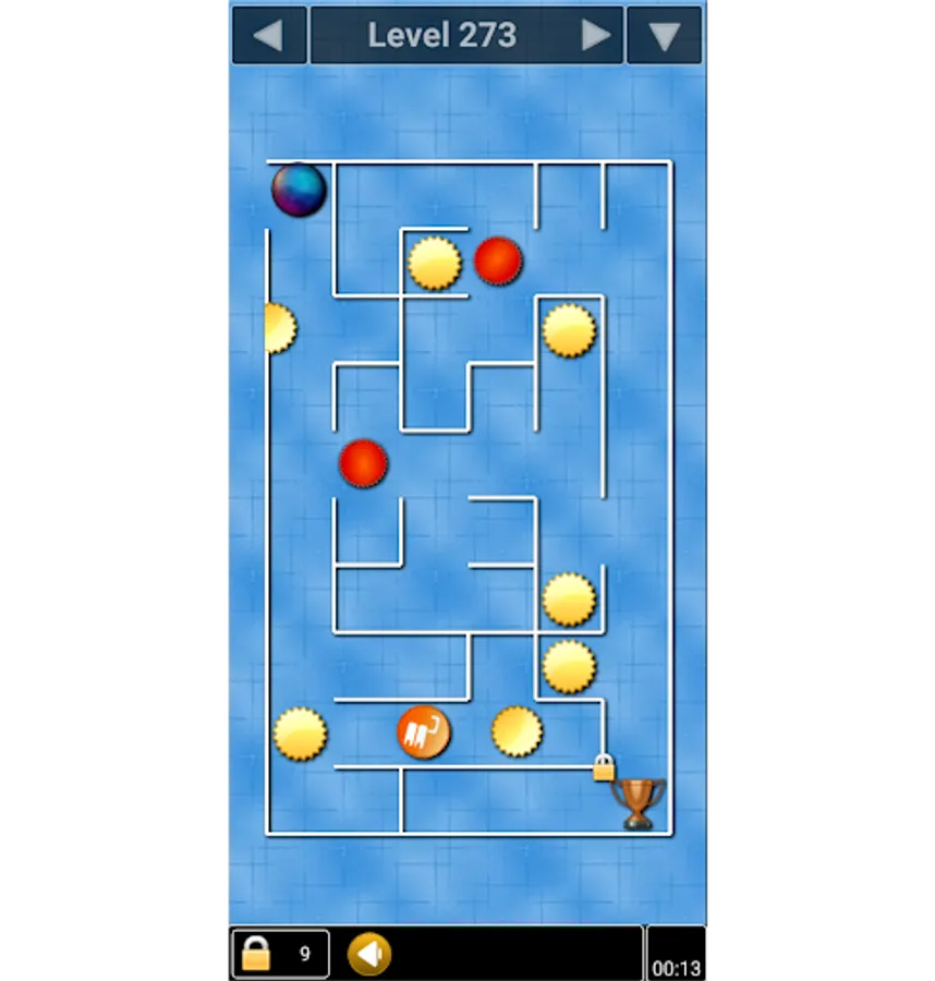 To break out of the maze you need to open the lock at the exit by collecting a set number of bonuses, while moving around the labyrinth full of danger.