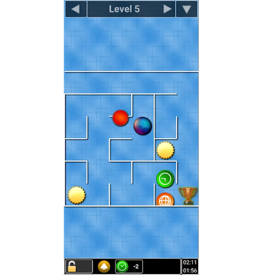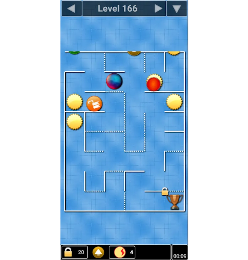 While moving around in the maze you may find other elements which affect your achievement of the aim. Pick up the “good” ones and avoid the “bad” ones.
