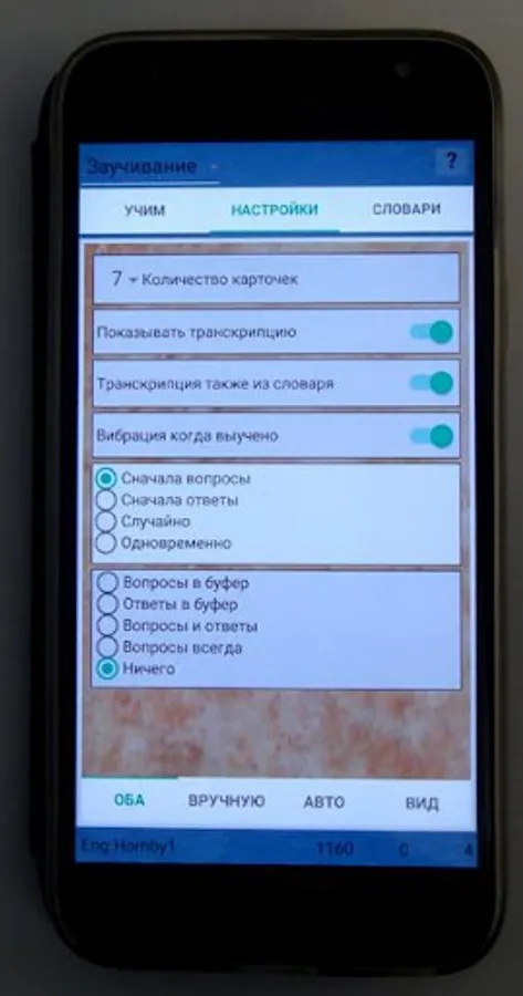 Memokartochki - are electronic cards (Flashcards) for learning words.