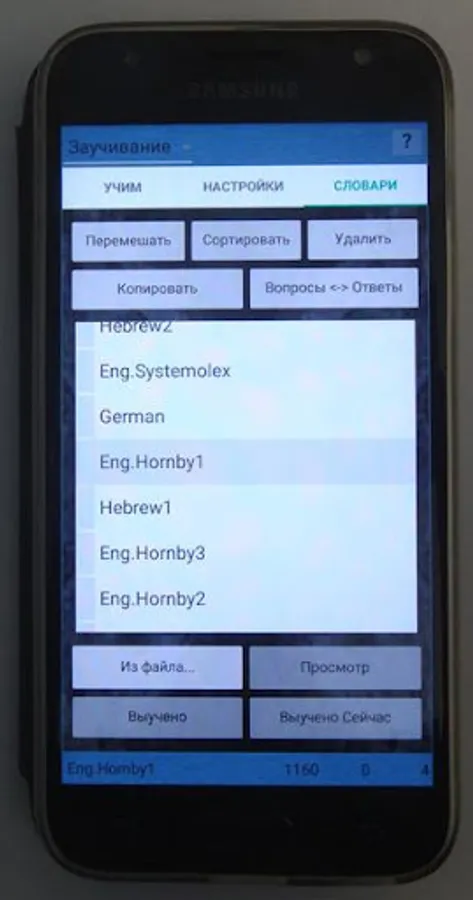 You can work with several dictionaries. There are different modes of learning and repetition. Ultra-fast repetition, which is called "the twenty-fifth frame" is also possible. Dictionaries can be downloaded from our website, or on account of the simplicity format, and other resources.