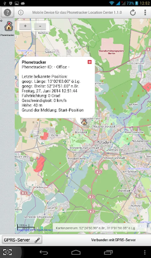 They are constantly informed about whether your Phonetracker are online and provide position data. You can also query the current position of a tracker as well as activate a mode called "Trace Lock", so that only the positions of a certain pre-selected tracker are shown.