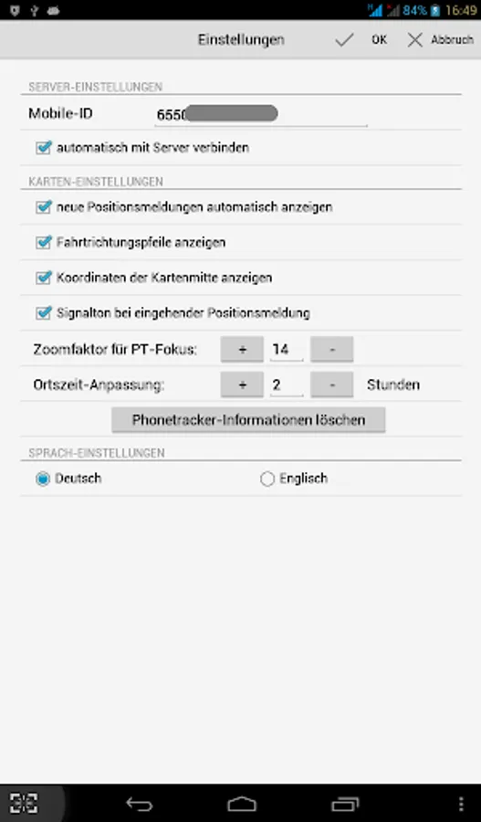 To display the positions the application uses a map of the type Open Street Map. The app is bilingual (English / German) and has an integrated help system.
