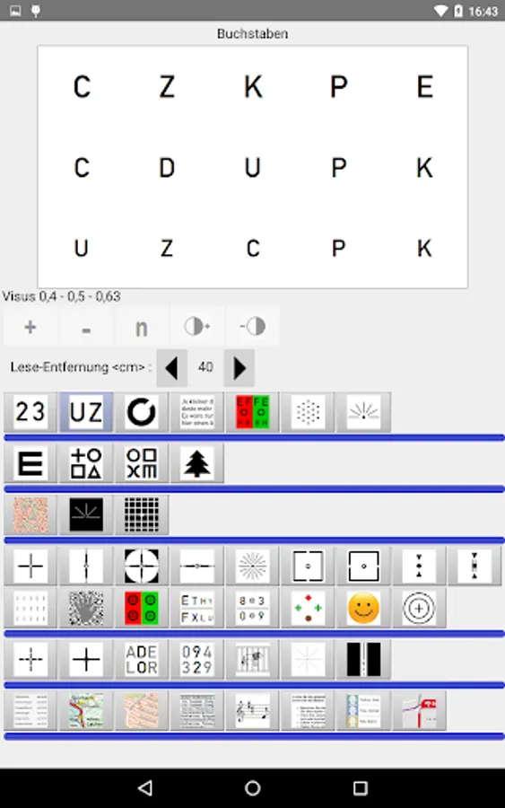 Test charts for testing the near vision, that are displayed on a tablet PC using the MultiVisusControl app can now be controlled by the examiner using the MultiVisus-N-Control app on a second device.