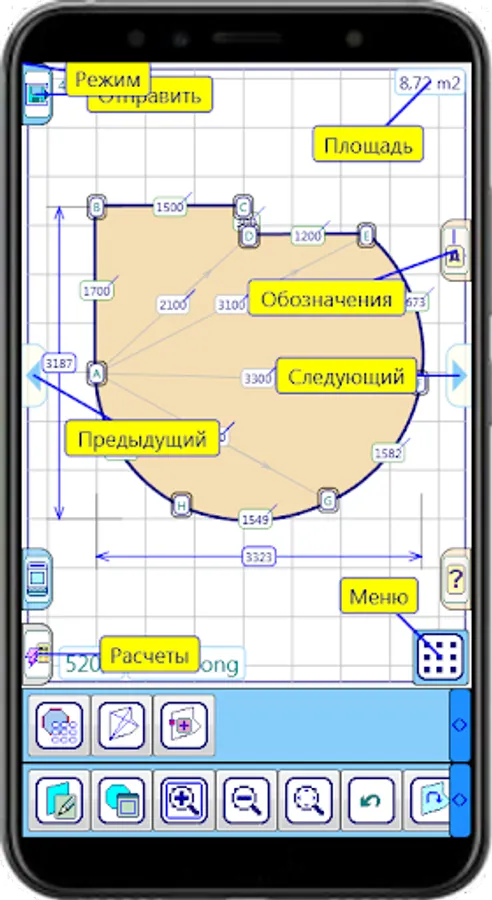 Arculator (NP) - a program for building and calculating suspended ceilings in a smartphone