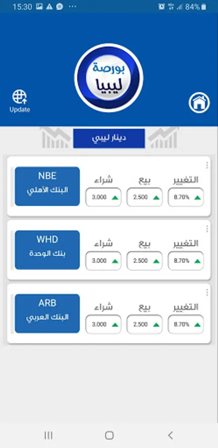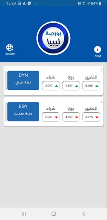 Follow-up the buying and selling prices of currencies with determining the increase or decrease rate for each currency