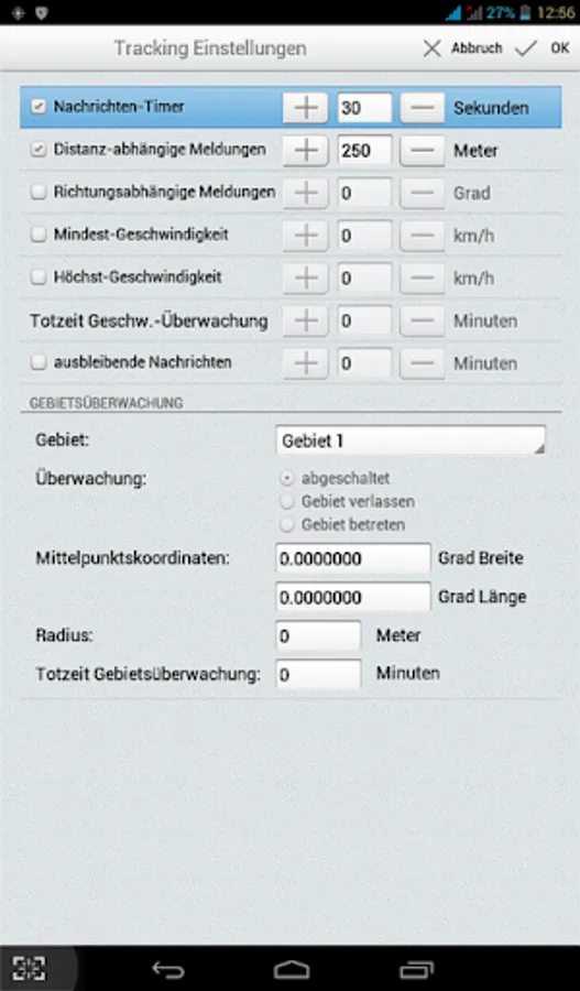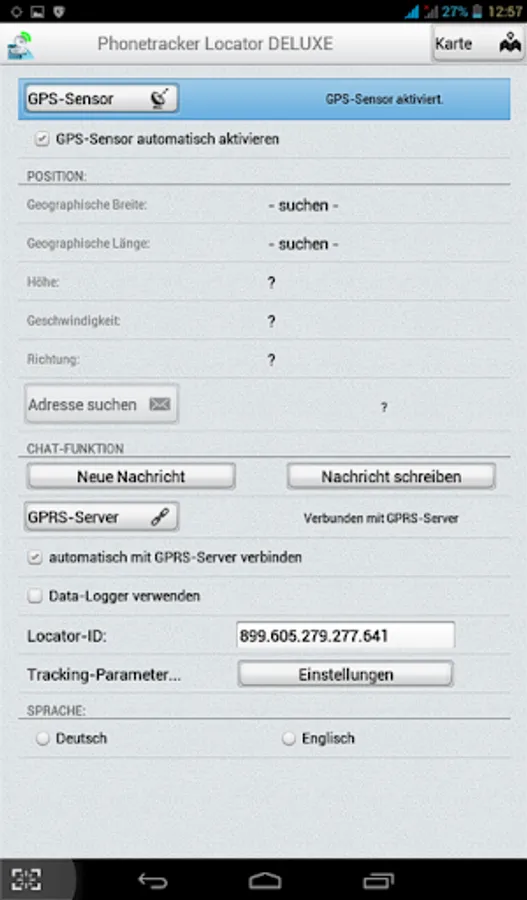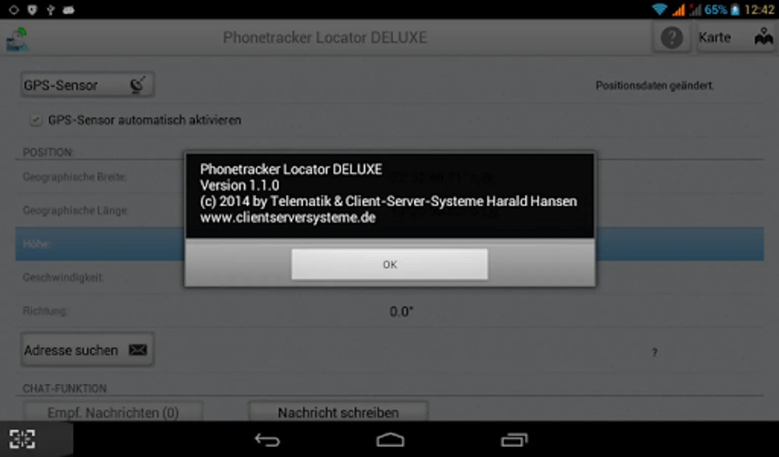 In addition, the user of the app can look at his own position on an Open Street Map and query the current address of this position. The Phonetracker Locator DeLuxe supports the following properties: