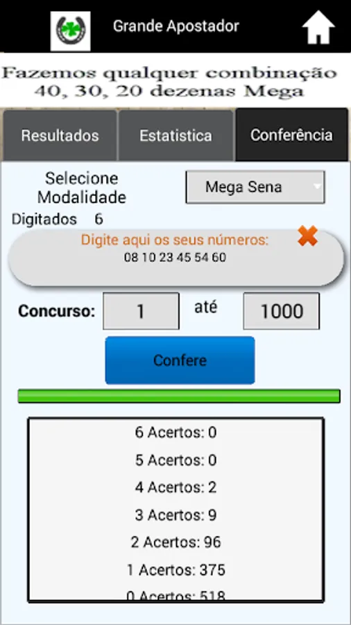 - Check out what would hit the first 1000 contests the modalities Mega Sena, Lotofácil, Quina, Double Sena, Lotomania and Timemania