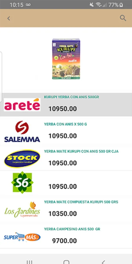 Compare prices of products from Paraguay Supermarkets, Super6, Stock, Arete, Mercado Movil, Salemma Online, Casa Rica, Los Jardines, and Supermas are currently supported.