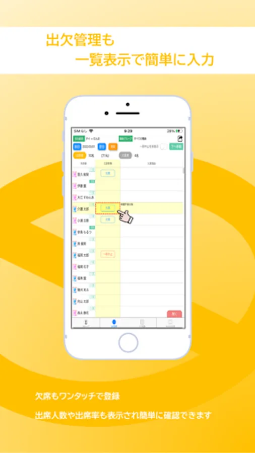 ・Display of the number of attendees (attendance rate) and the number of absentees on the specified date