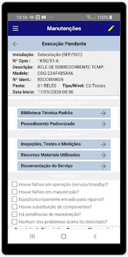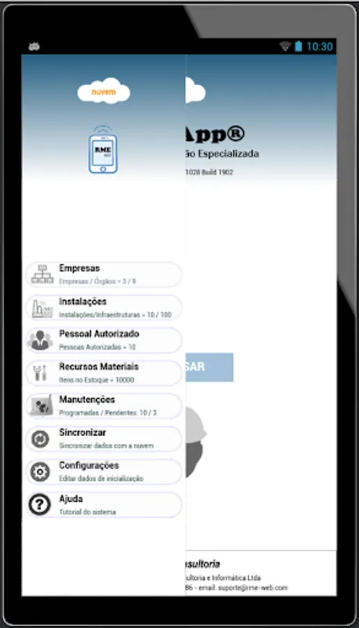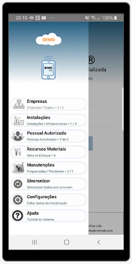 RME-App® is a free application, offered by D&V Consultoria, which allows the user to communicate with RME-Web®, a System Specialist in Maintenance of electrical, electronic, mechanical and civil infrastructures of industrial, commercial and building installations.