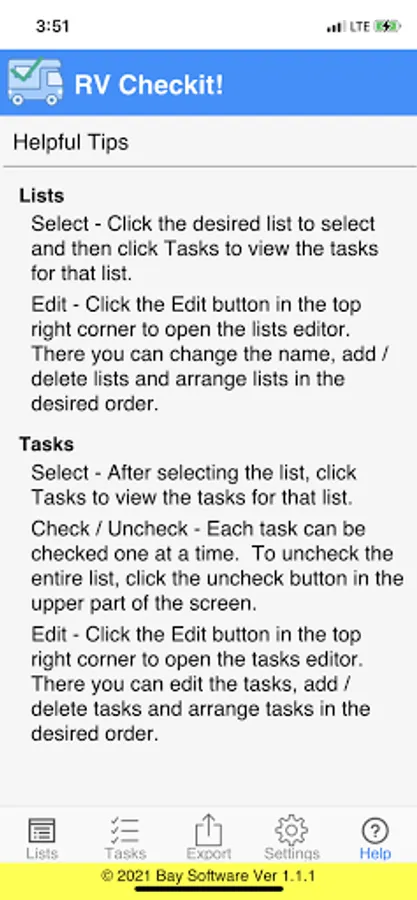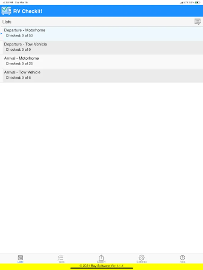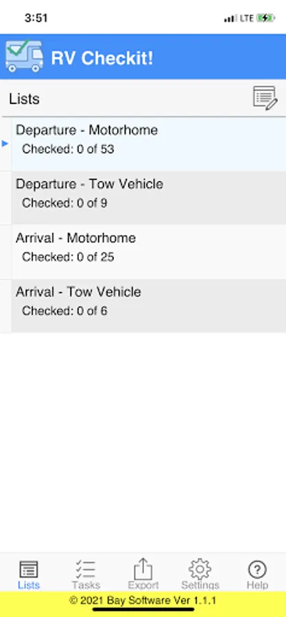 There are a lot of steps to getting things right when it comes to an RV. RV Checkit! is a great tool to help you with the process. It allows you to create your own unlimited Lists such as Departure and Arrival. With each lists you can create and organize the Tasks to be completed. You can be as detailed or general as you want in the Task descriptions.