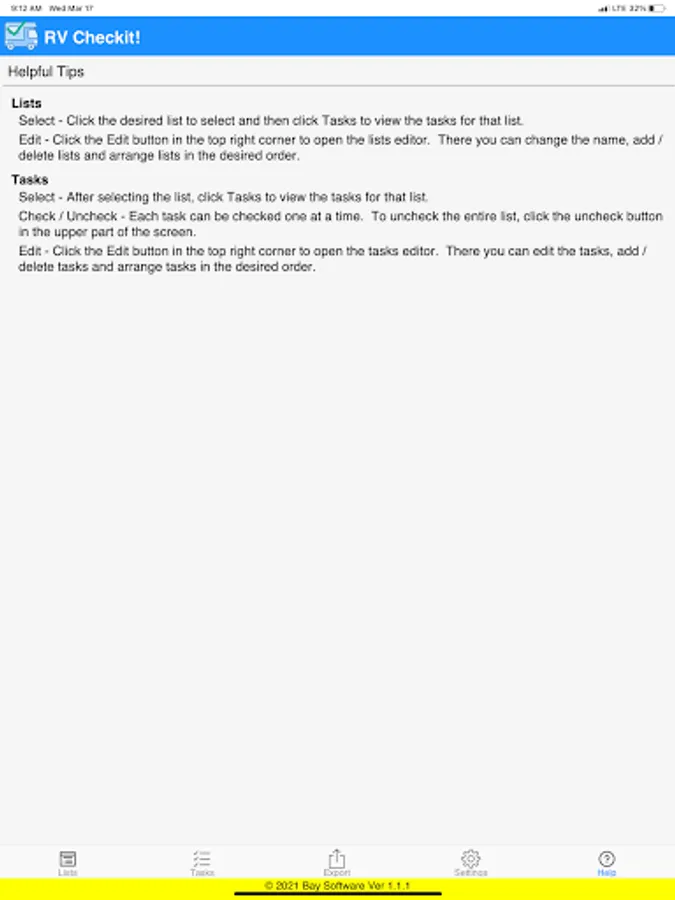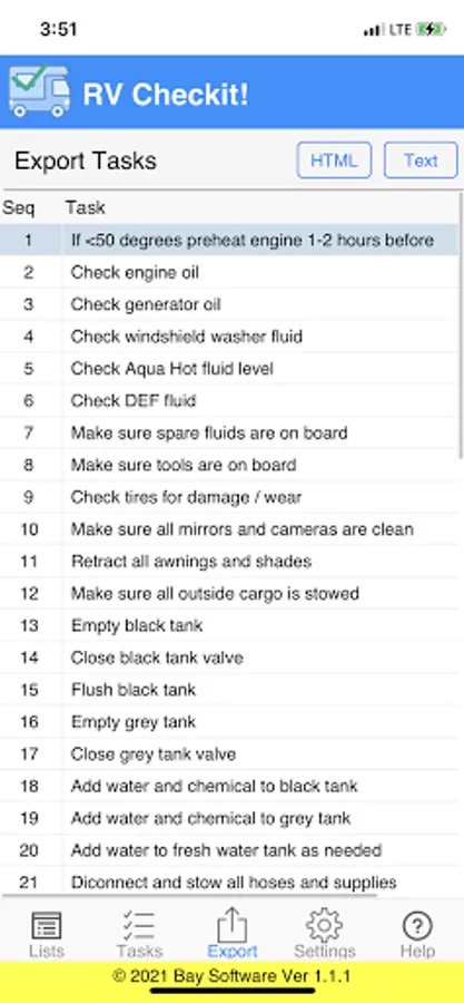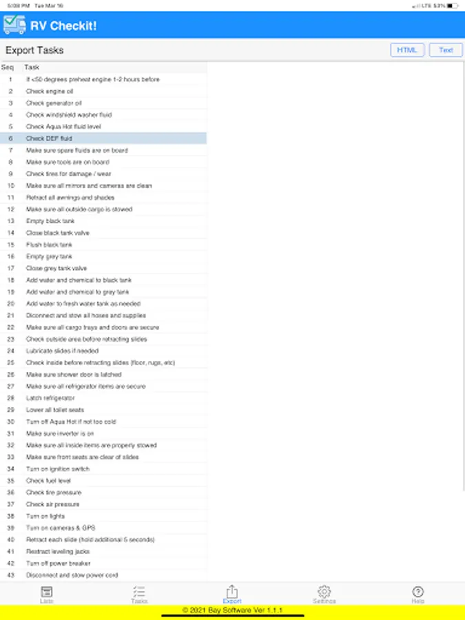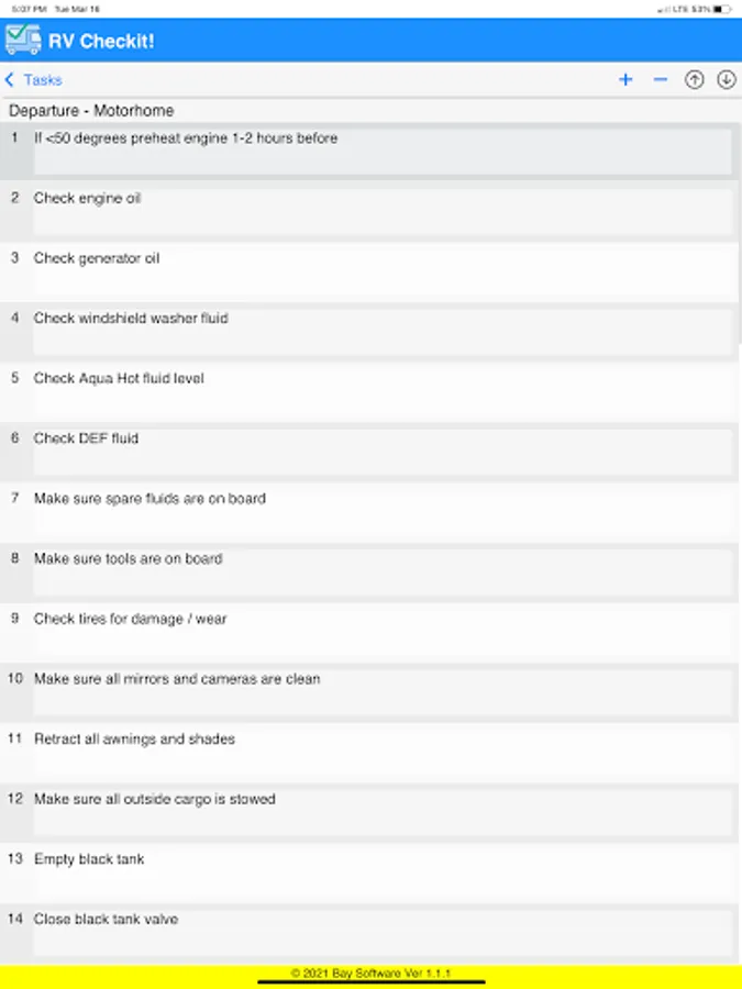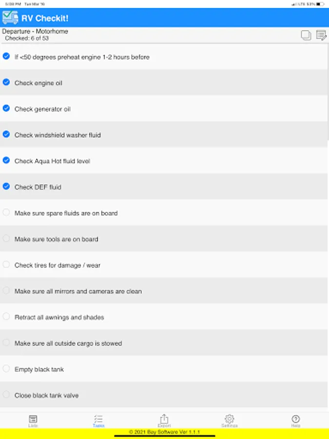 Then when you are ready to use RV Checkit! to get your tasks done, you simply check them off one by one as they are completed.
