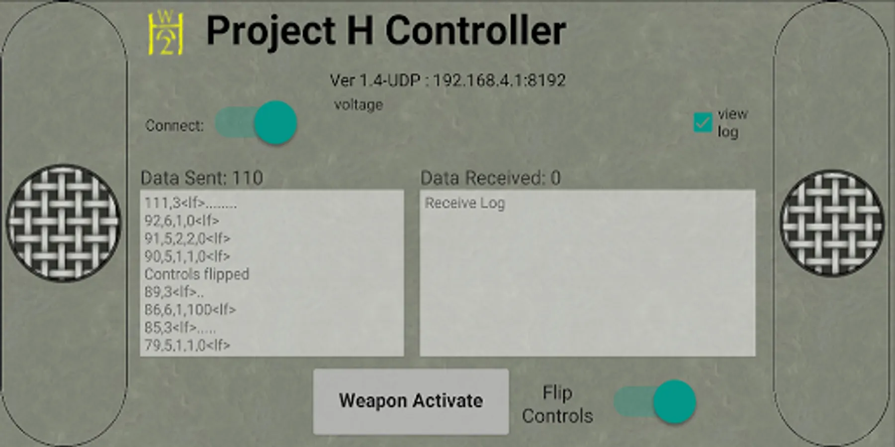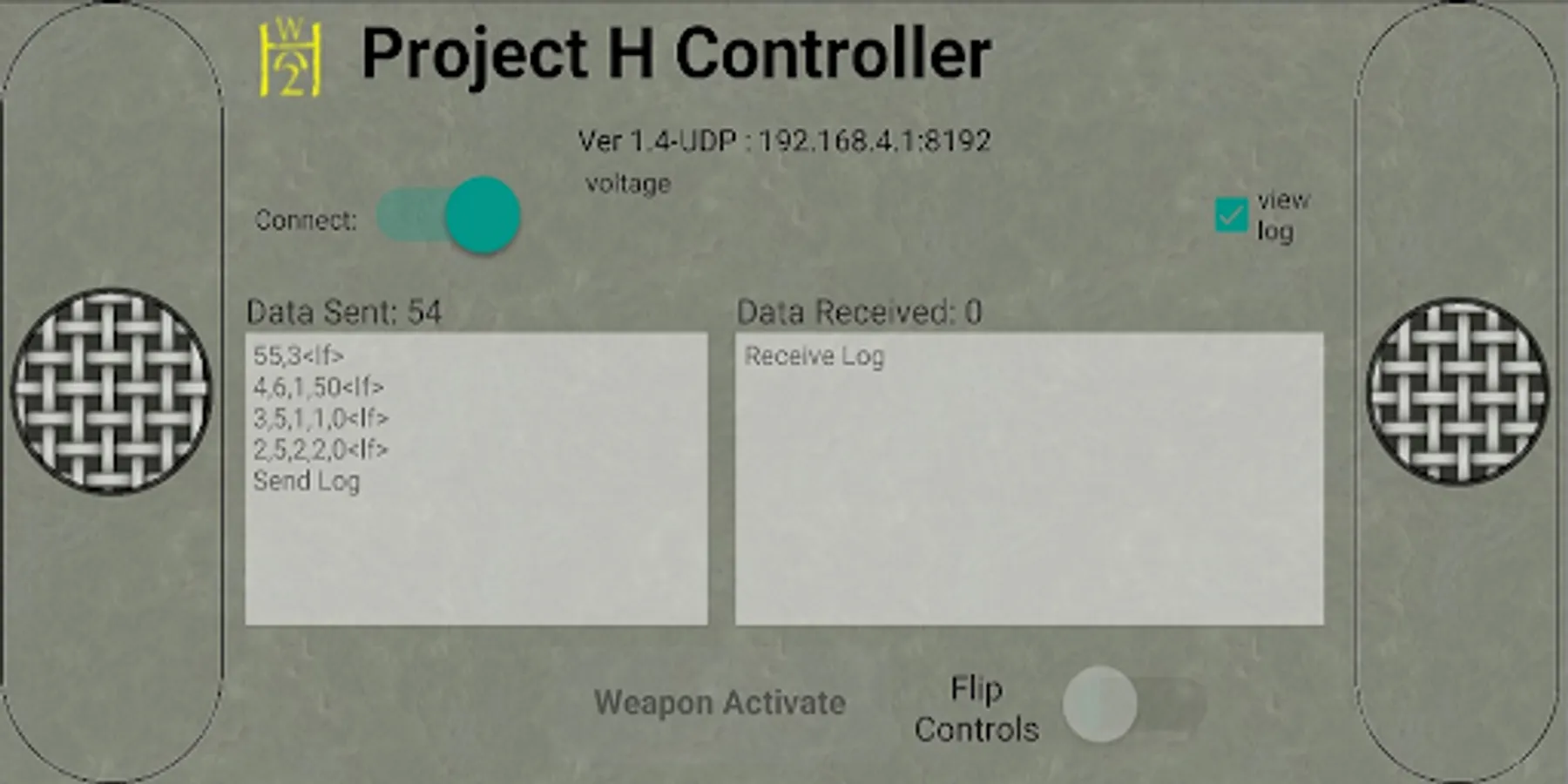 Fighting robot controller . Control a wifi connected fighting robot with your favorite phone or tablet. The app allows controlling driving motors as well as weapon motors. Typical hardware includes a wemos for control and ESC motor controllers on the robots