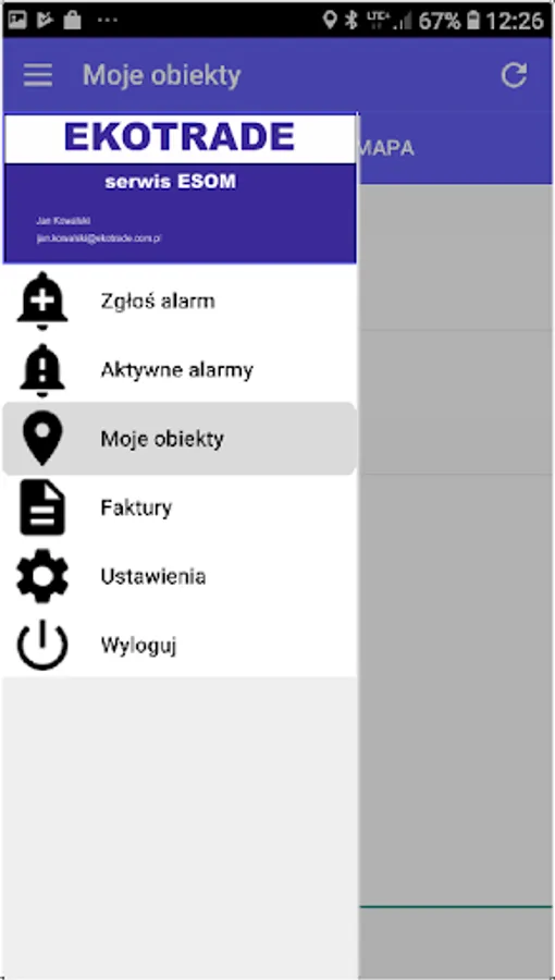 Mobile application for users of facilities monitored by EKOTRADE Sp. z o.o.