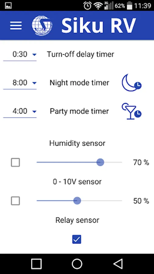 The application is specially designed for comfortable control of SIKU RV units. Its use is more functional and practical than operating the unit with the controls on the casing. Now you do not have to stand up and go to the ventilator to operate it. Enjoy your leisure time on a comfortable couch anywhere you have access to W-Fi and operate your SIKU RV ventilators. Integrate several SIKU RV units into a single network and operate all of them with a single touch.
