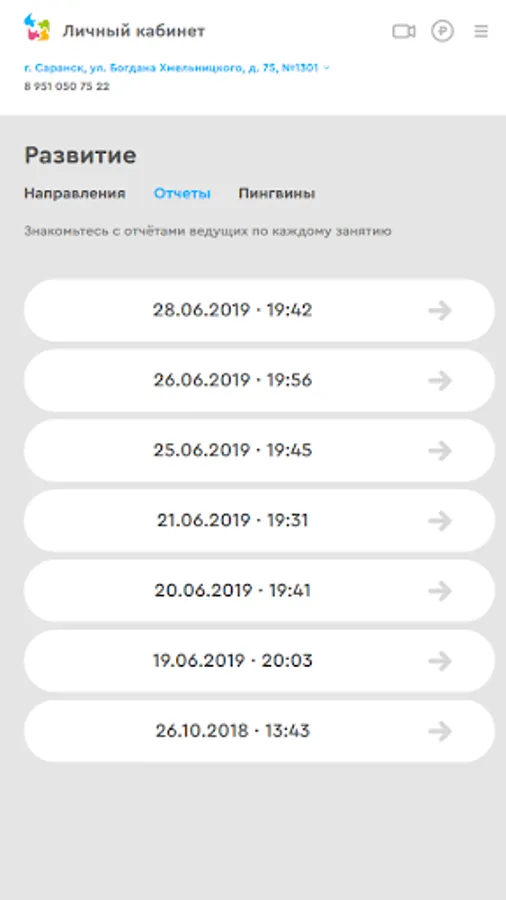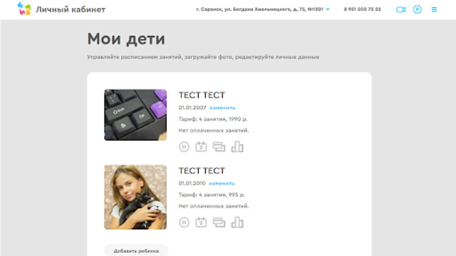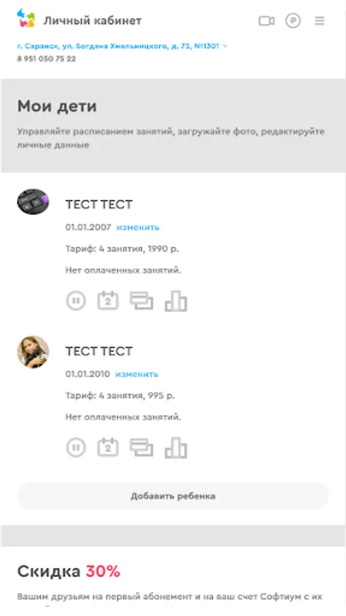 Access to a personal account for clients of the Softium School. Manage your booking of classes, receive reports on the progress of your children.