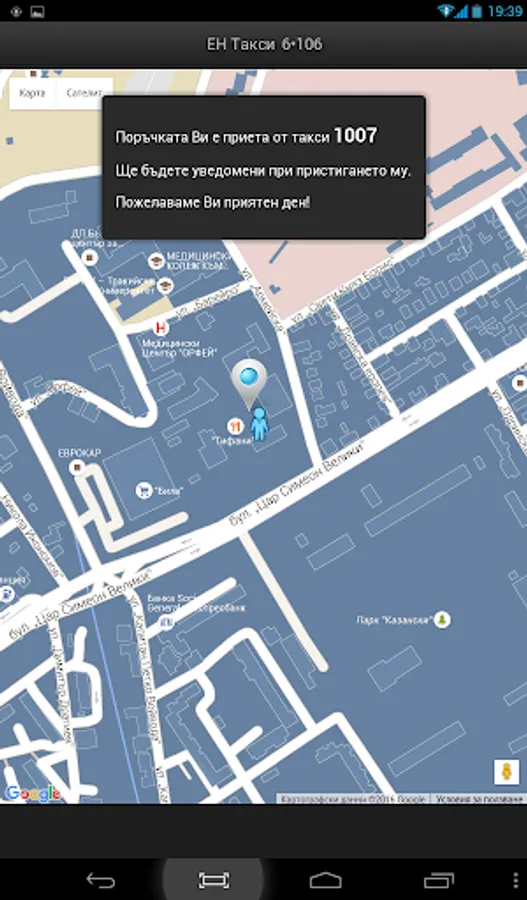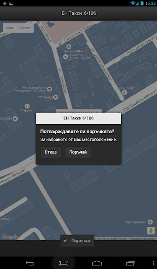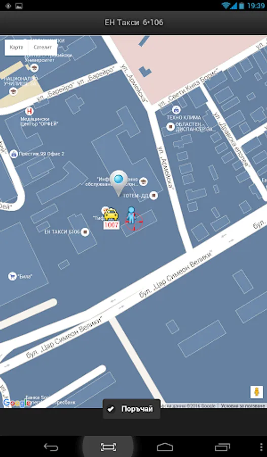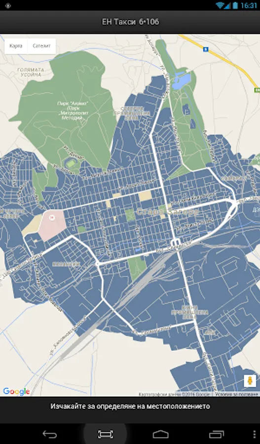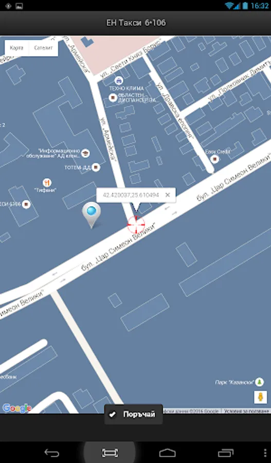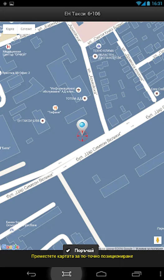 The app uses GPS and the Internet to locate your location. The interface allows you to move the map cursor to refine your location.